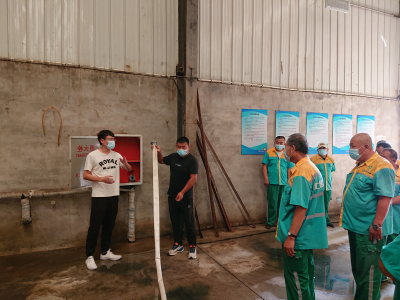 隨后,全體受訓(xùn)人員來到垃圾中轉(zhuǎn)站篩分車間內(nèi),由北臧村事業(yè)部經(jīng)理王峰向大家深入淺出地介紹了消防水帶的快速展開、收納和接口的鉸接安裝,并帶領(lǐng)大家進(jìn)行了現(xiàn)場模擬滅火演練。